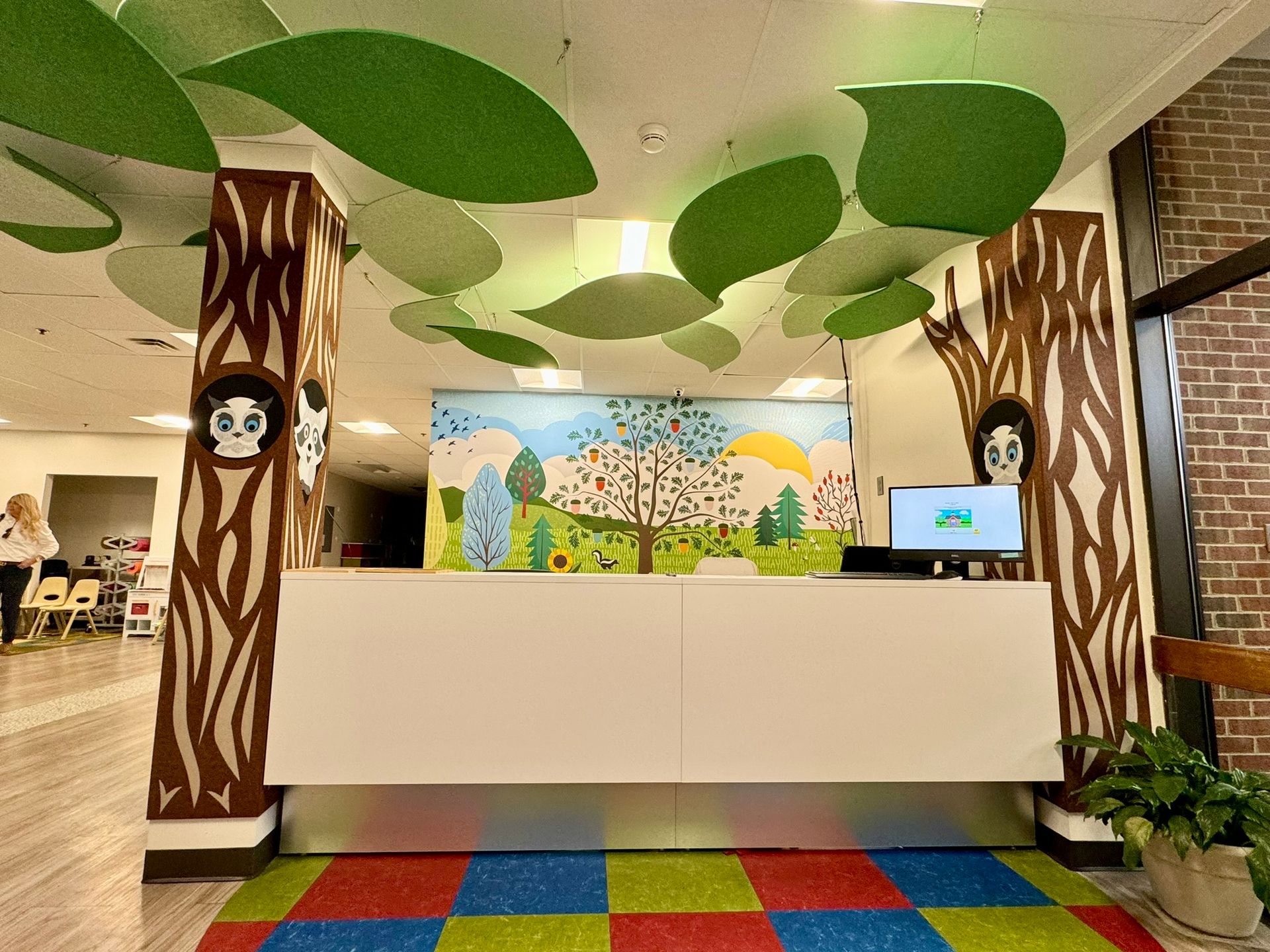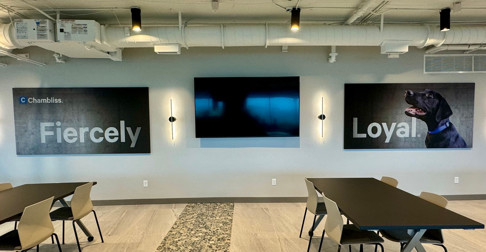 These images provide insight into some of our recent/favorite projects! The printed stone, invariably, evokes those passing by it to touch it, convinced it is 3D. The Chambliss Dog and Mountain Scene show how High Definition Imagery translate beautifully to our PET Acoustic Felt.